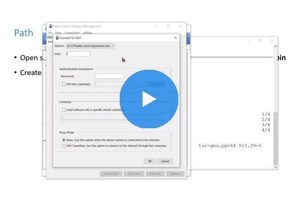 The video shows you how to:Create and store a path so it will run with every shell login.Install utilities using the yum command including wget, tar-gnu, gzip, and db2util.Check installs in Open Source Package Management toolRun the commands to begin the install of Zend Server.Watch additional videos in the series for Installing Zend Server on IBM i:Introduction and PrerequisitesHome Directory SetupPost Install ActivitiesNot a Zend Server customer? You can try it free.